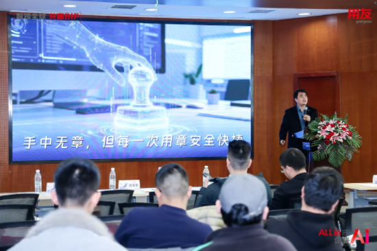 用友YonSuite分论坛上,动码印章售前交付中心总经理姚迎勃发表了题为《动码印章 AI助力开启数智化印章新纪元》的主题演讲,他深入分析了企业数智化转型过程中印章管理存在的核心痛点,并阐述了动码印章防伪溯源能力及智能化用章管理模式,AI技术在行业印章管理突破性应用。