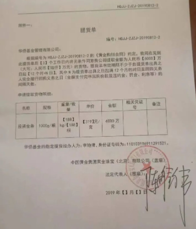 在华侨系案发,核心人物失联跑路后,投资者找到中国黄金讨说法。然而,中鑫国际及其母公司中国黄金集团声明,侨行天下的“黄金租赁APP”所涉及的相关协议,系冒用中国黄金及旗下中鑫国际等公司为签约方,并伪造中鑫国际等公司公章和法定代表人名章。